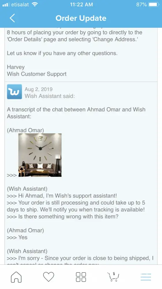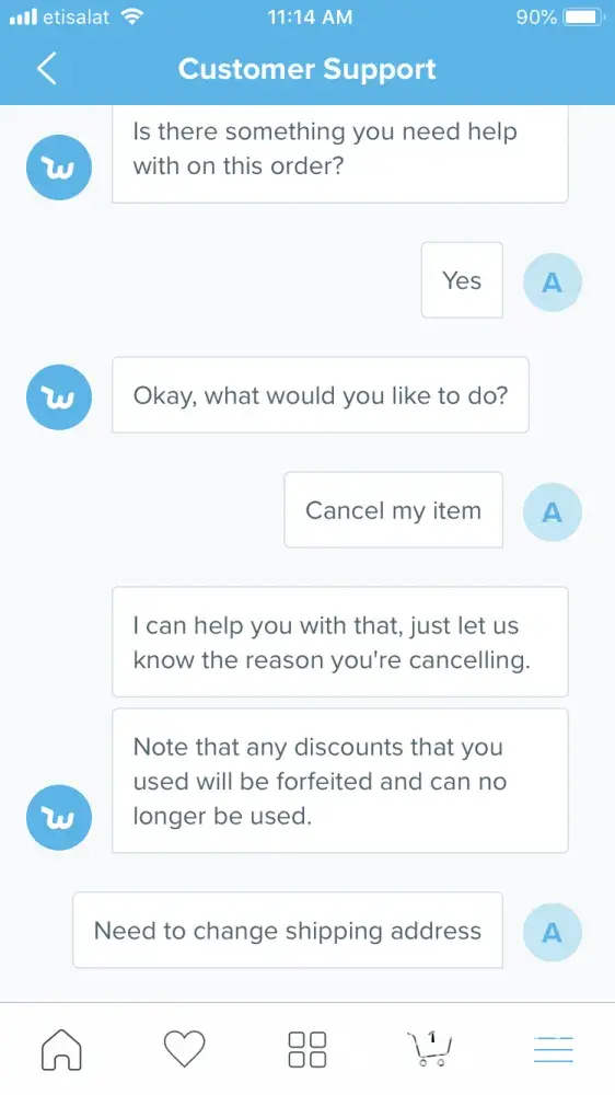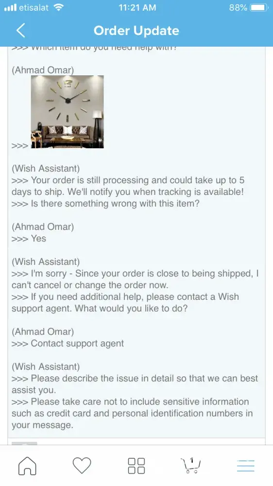 Wish customer support