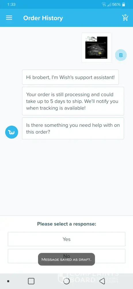 Wish failure to fulfil orders after receiving confirmation