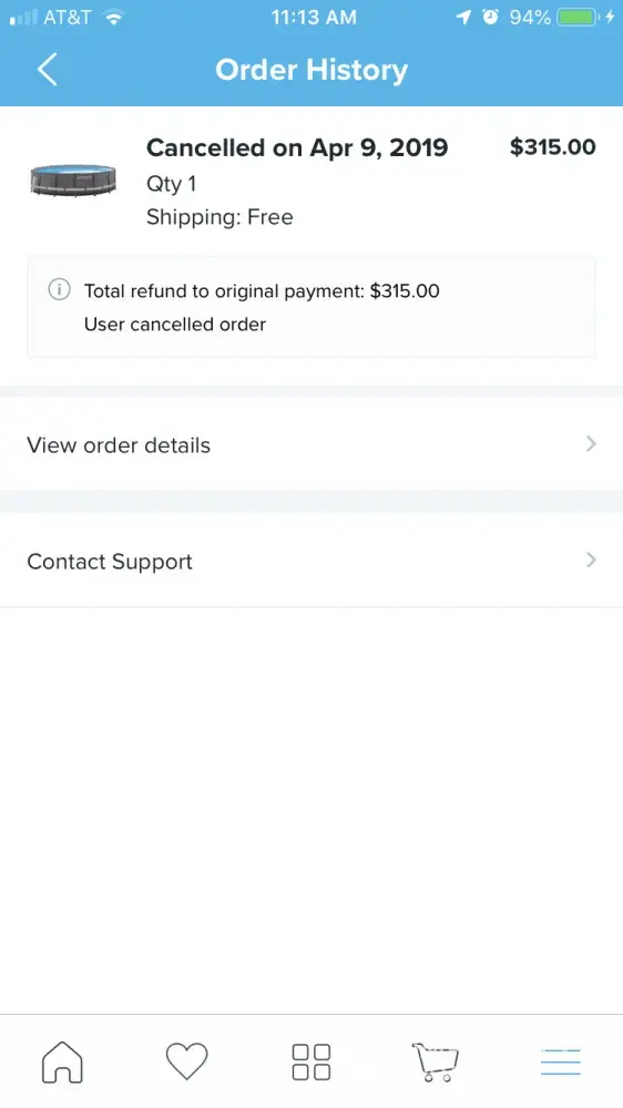I received an alert on my phone that I had ordered a pool and a watch that totaled 315.00, which I immediately canceled the order and they refunded me but not back on my credit card like a refund should have been done. Because that's where They took my money from and when I sent them an email stating that I didn't order this they put my account on a block . I've tried numerous times and still no respond . I have never received anything and they refunded my account but to wish cash . I'm trying to get my money back to my credit card to cancel my wish account and be done but if I do that then the 315.00 will not be refunded . It's my money and I have nothing that was ordered so I just want my money credited back to my credit card account and they won't so that's stealing from me because there is no way to contact them nor get a human reply . Everything is automated . Totally never order or set things up like this through the internet due to [censored] like this . Can someone please contact me so I can get my money and close my account . [protected]. Where do I go next