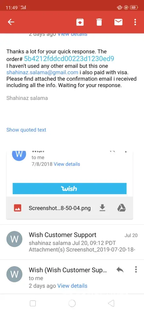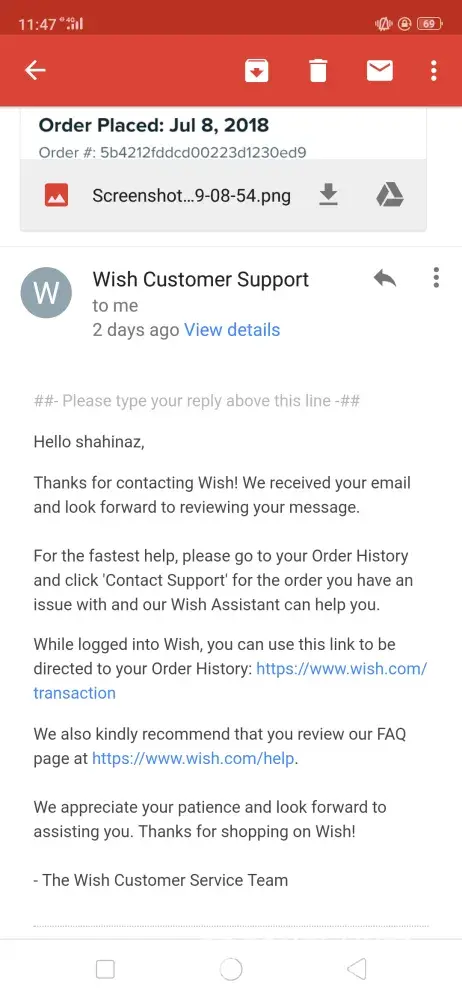I placed an order on wish.com on 8 July 2018. I haven't received half of the items (12 items) i ordered uptill to date (22 july 2019) I've tried contacting the customer support several times through the application which is totally automated and never replied with a solution I've received a reply that my items are still in transit and i should be patient till it arrives! Now it's over a year and i haven't received any of the missing items yet! I've sent them several emails explaining the case and stating my request that they should send me the items and follow up on their status or if they are lost they should send me other items with the same value or refund the money that i paid for those items i never received! I received dumb replies stating that refund isn't possible after 30 days of delivery! Duhhh i never received them! Please help me find a solution for my issue with this company that apparently intend to steal your money! I've attached screenshots of the email log. Kindly help