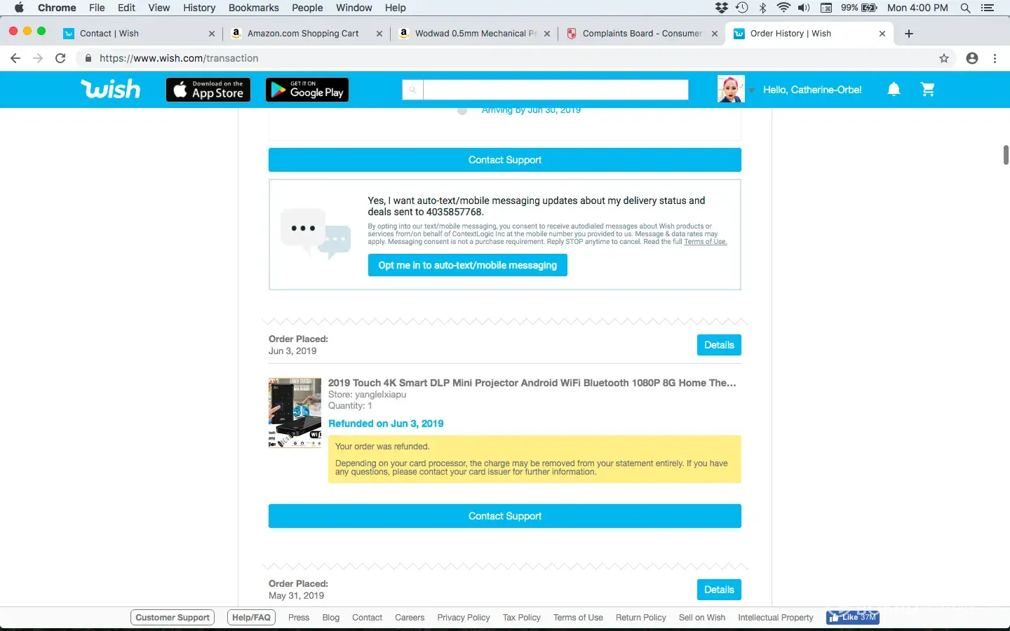 I'm trying to place an order because you canceled all of the other orders where I used my husbands Charles Palmer ‘a card and now I'm trying to use my own card and you won't accept it. I have been shopping with Wish since 2014 and I have never had a problem before. I really need Birthday presents for my two daughters and they were canceled Unicorn pants 2. Cupcake pants 1. You also canceled the mother of the bride dress that I planned to wear for my younger daughters wedding. I am disabled so it is too hard for me to go out shopping. That's why I love Wish so much! Please help me! Thanks!