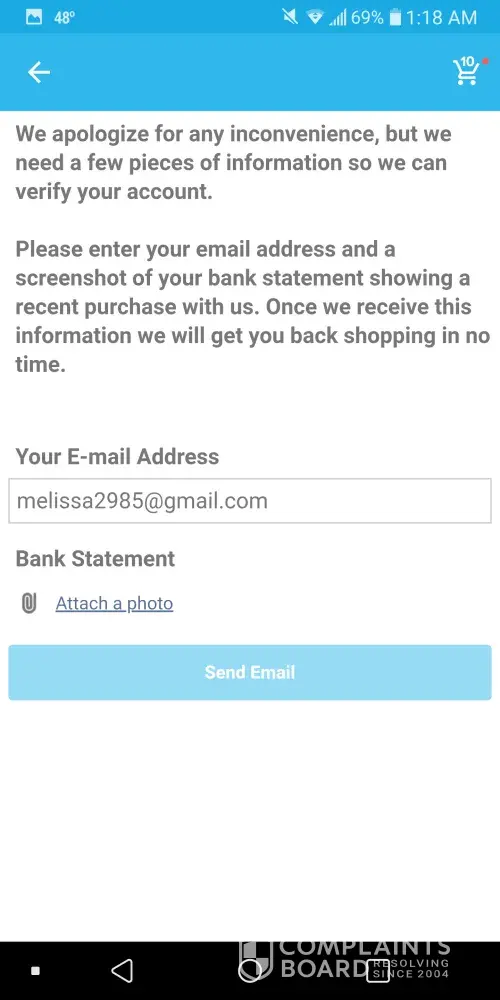 I keep being asked for my bank statement confirming that I've purchased from wish before. I do not give or send anyone my bank info or statements. I'm trying to order from wish and I'm getting no where because of this. I think asking for my bank statement is really intruding on my privacy. If this does not get resolved quick I will be ordering from somewhere else.