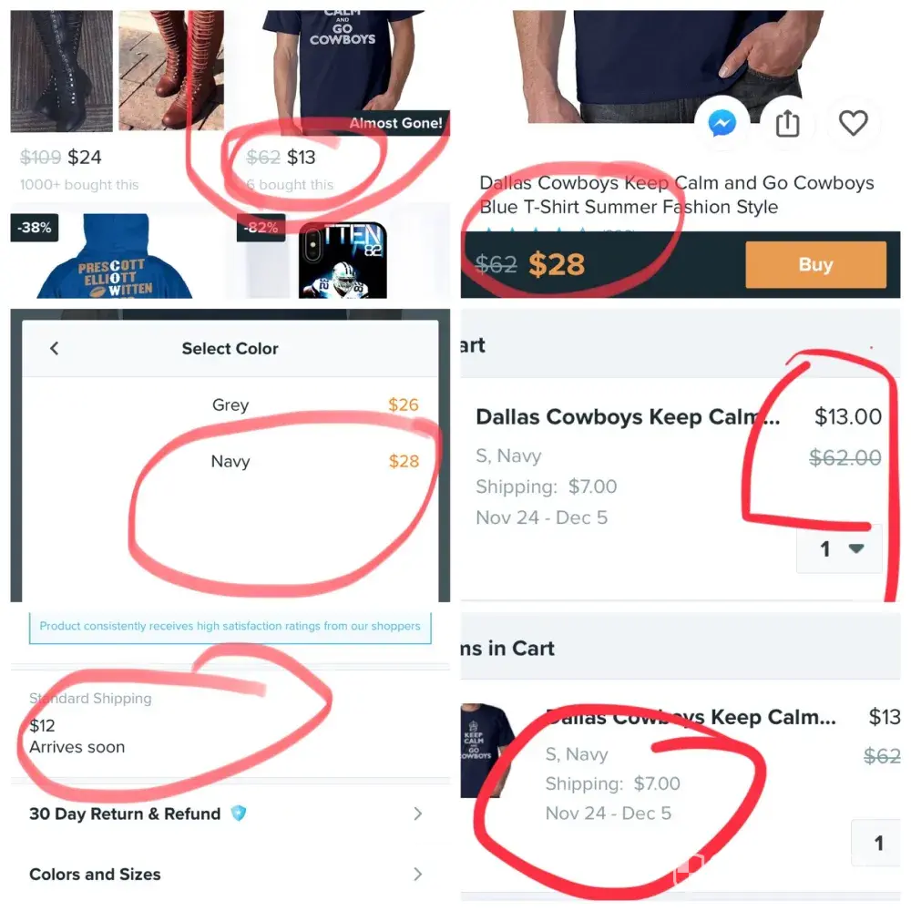Class action law suit should be filed against their false advertising tactics. Price shows one amount but changes to a higher price at checkout. What used to be a good deal is now a fake one. Adios WISH, you were good while it lasted.