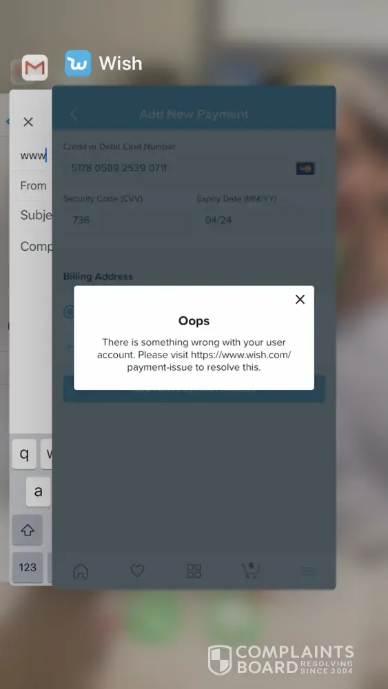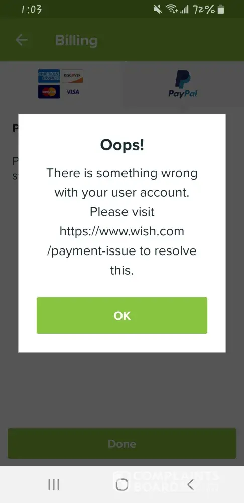 Every time when tried to submit my payment this message would appear There is something wrong with your user account please visit www.wish.com/payment issue to resolve this