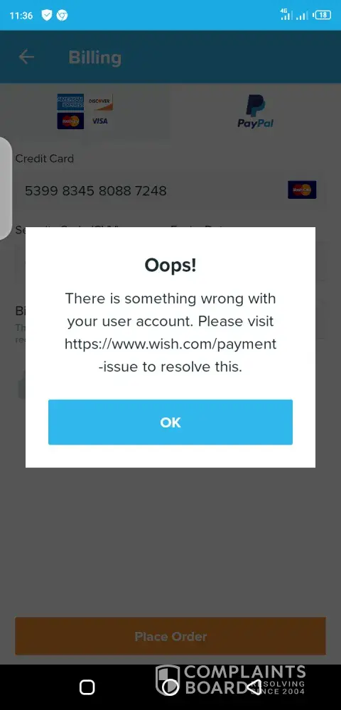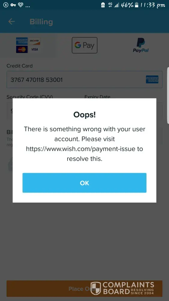 After submitting my payment details, it says there is a problem and I should visit wwww.wish.com/payment-issues which is not helping matters