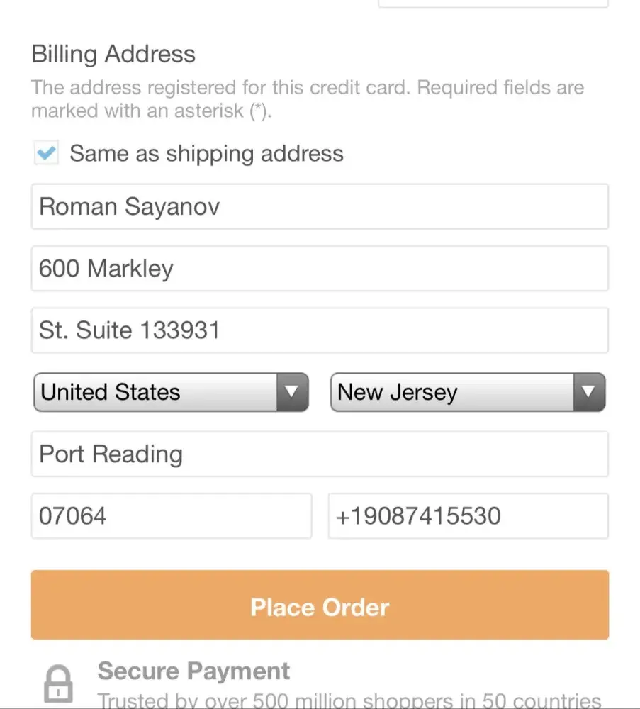 I had a time without use my wish account, and when I try to order something it ask for a payment method, I use the same card that the last time... I didn’t realize the mistake until I check the order... they refunded it automatically 3 days later... I check the option of Same as shipping address... and this appear.