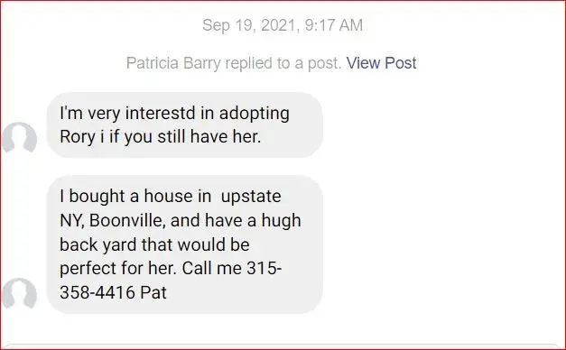 I'm very interestd in adopting Rory i if you still have her.