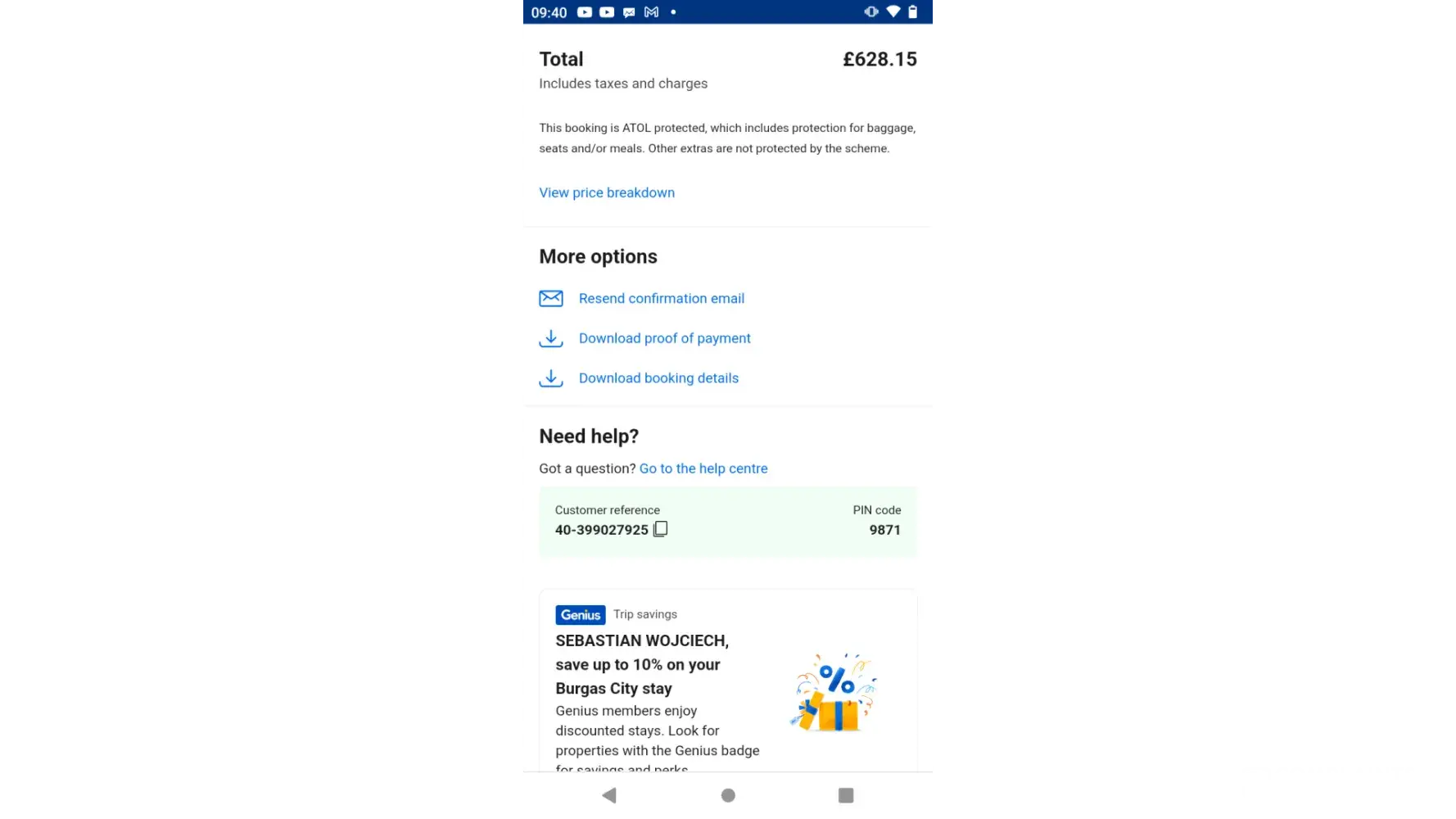 Flight confirmation number is CJHN6A. Flight time was 6:30am on the 25th of December 2023 from Bucharest to London Luton.