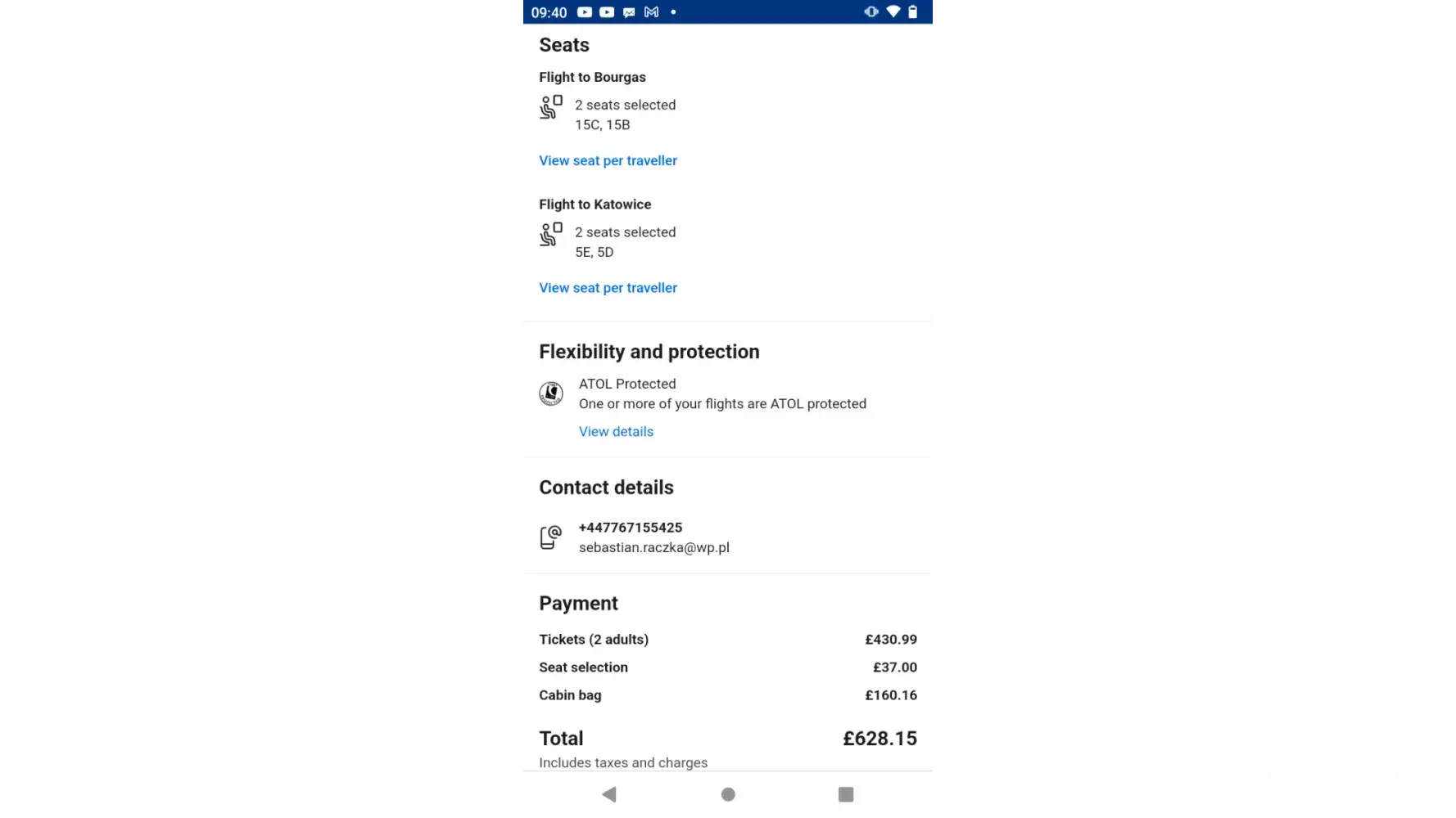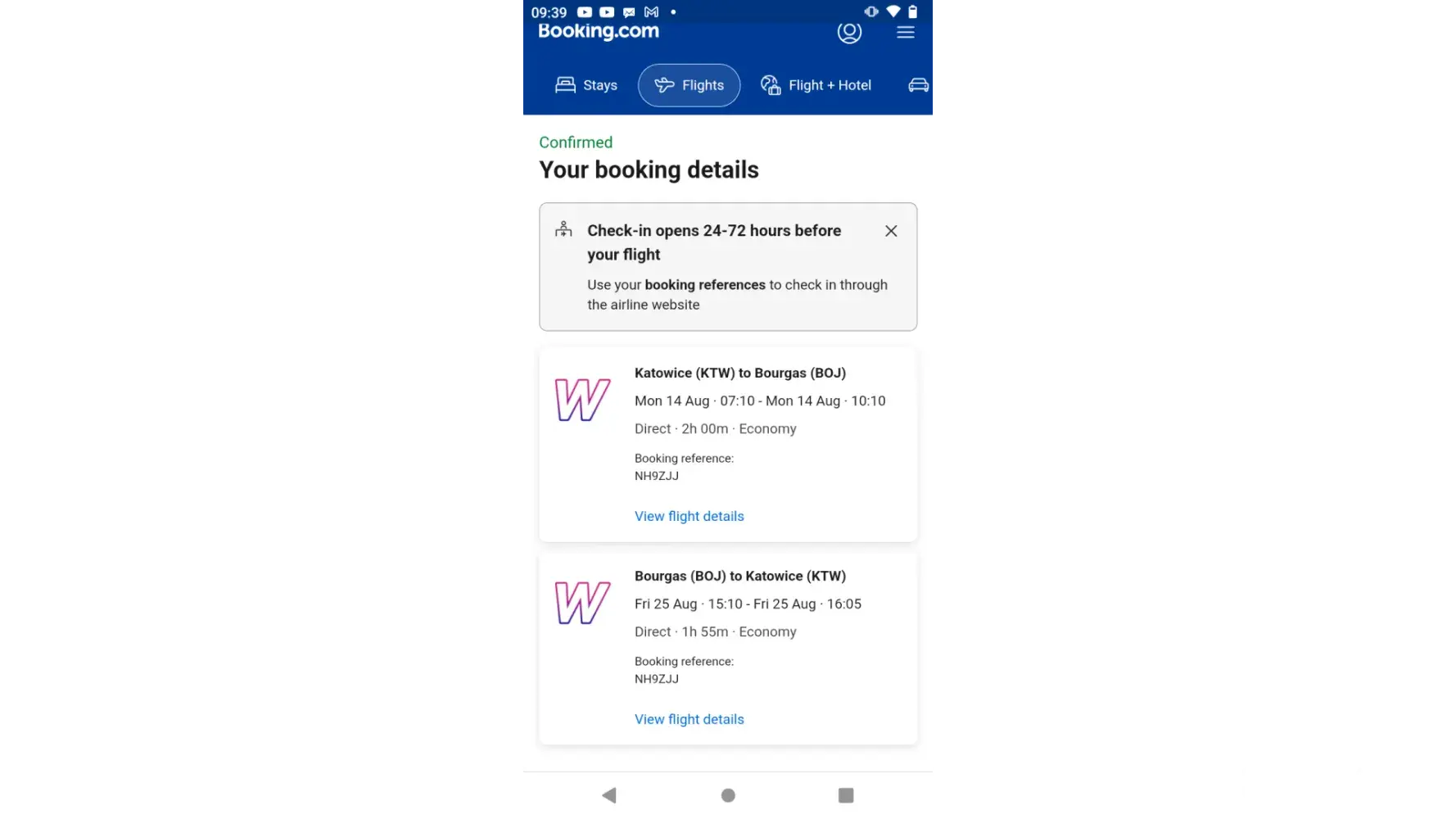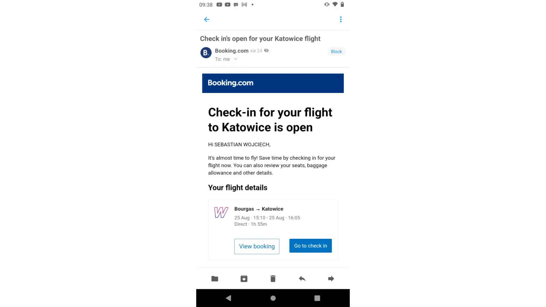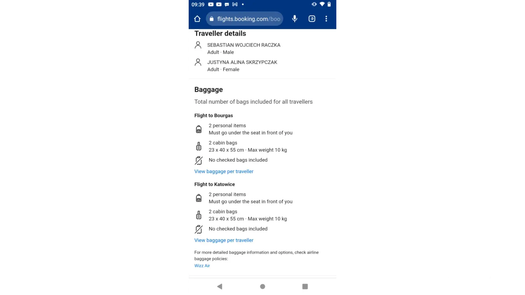 Sebastian Wojciech Raczka - flight W61262 25/08/2023 Burgas BG to Katowice PL