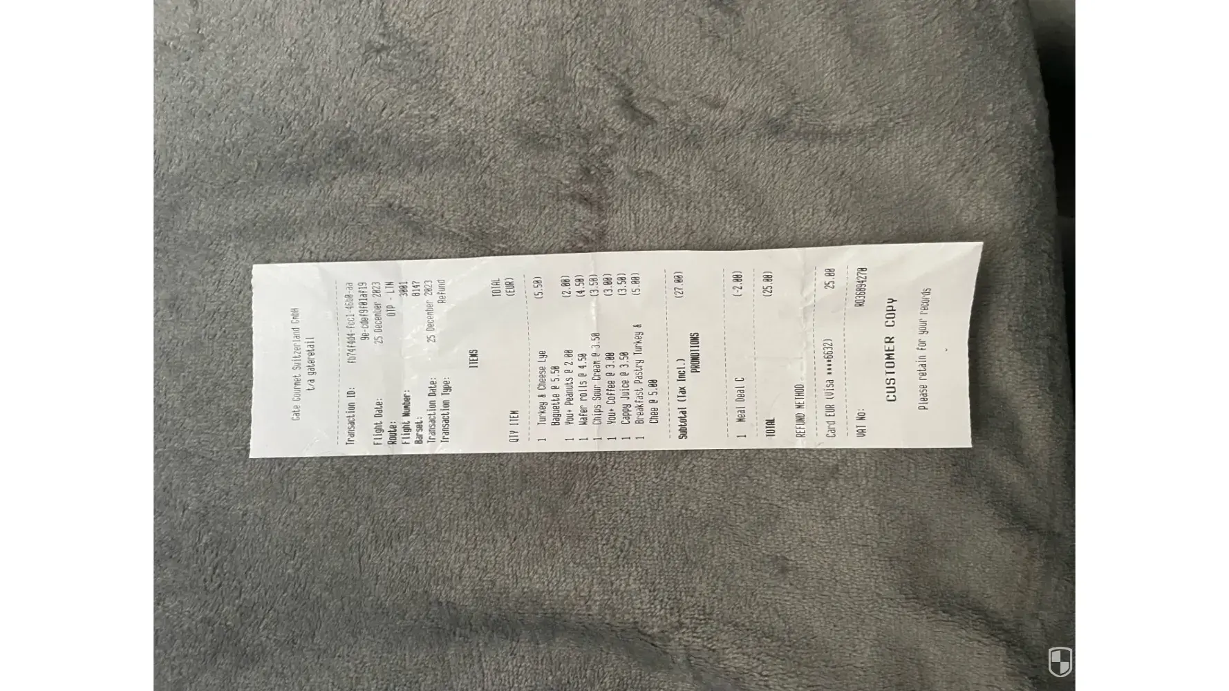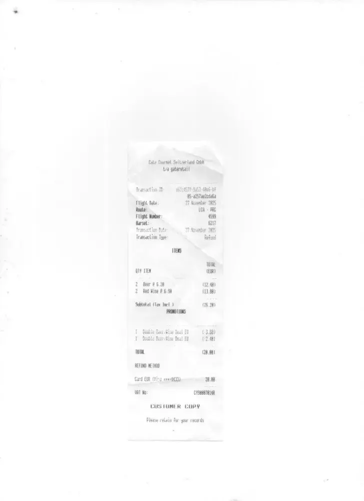 I made an inflight purchase on my flight from Bucharest to London Luton. They charged me the wrong amount and said they would refund the transaction. She also assured that the incorrect amount wouldn't even leave my account because the transaction wasn't live or immediate or something along those lines.