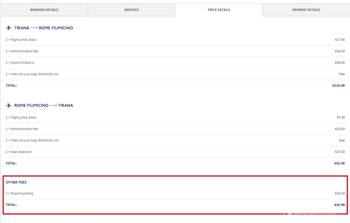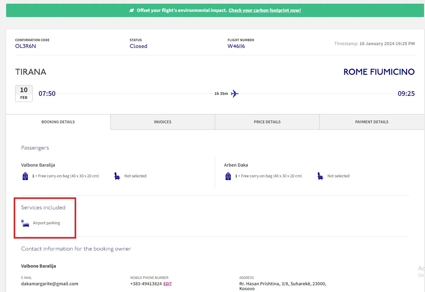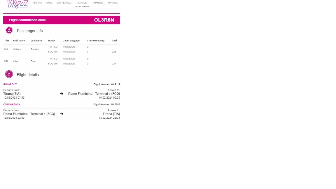 On 10th of February, 2024 my parents were scheduled to fly on Wizz Air W46116 from Tirana Airport (TIA) to Rome Fiumicino. I booked and paid everything online for them including the Airport Parking at Tirana Airport.