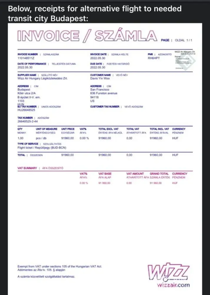 Dear Wizz Air Customer Service,