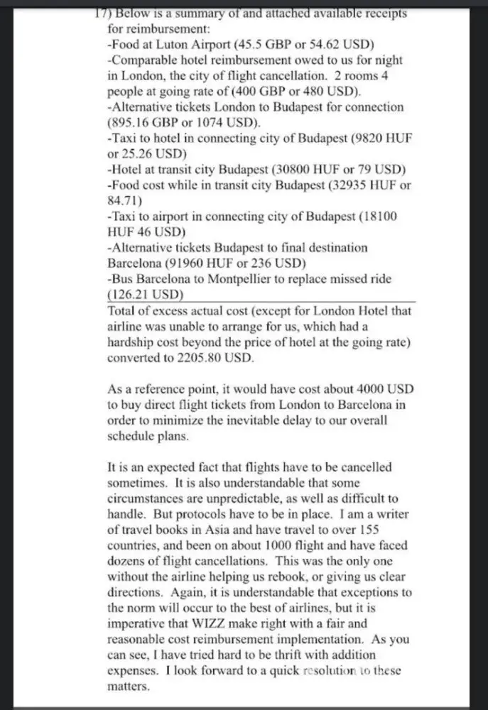 I am still awaiting reimbursement in the amount of 116 euros for an incident dating back to 22nd August. I have received an email saying this reimbursement would be refunded. Additionally, I am seeking clarification on two passenger delays, each lasting 2 hours and 35 minutes, as well as a detailed explanation as to why Wizz Air decided to operate our flight with four unidentified passengers on board.