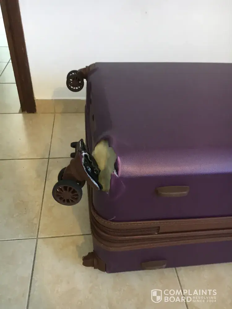 When I collected my luggage after the flight on 20 July from Budapest to London, Luton Airport, I realized that both of the wheels are broken. THe cover of one of the wheels was broken and lost and the cover of the other wheel was split and partly lost, the other part is still on the wheel.