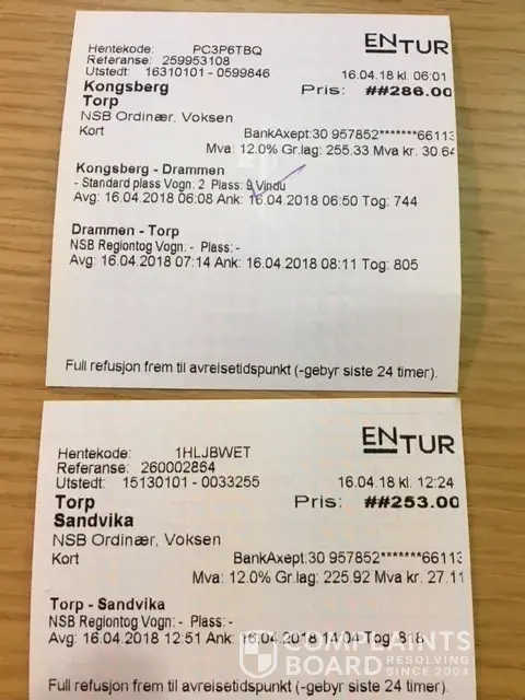 - Train from Kongsberg (the city where my home is) to TORP airport in the morning of 16 April, costing NOK 286 (Norwegian Krone).