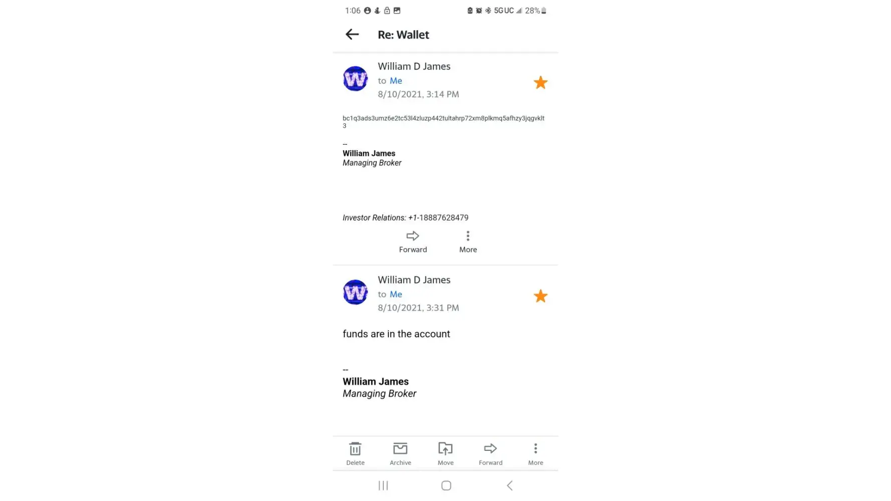 Soon after, I received a call from a different broker, who encouraged me to invest another $250US. Again, I had nominal gains and wasn't making any substantial profits. I decided it was time to withdraw my wallet. Unfortunately, I was unable to access it. There seemed to be some problem, and I was told that there wasn't enough money in my account.