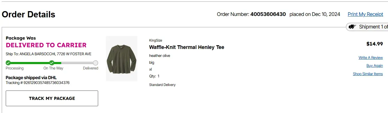 Ordered a gown and robe for 38.00 dollars for my wife on her birthday,which is a lot if your elderly and on social security. They manage to get their catalogs to us every month but managed to ship to an old address over 4 years old. Checked the shipping address as same as address on debit card to no avail. Customer service lady was rude and told me it was on me. Never received receipt, or proof of order. It's been in shipping for over 15 days now going from my old address to who knows were as customer service refuses to research my order. My advice, stay as far away from this company as possible.