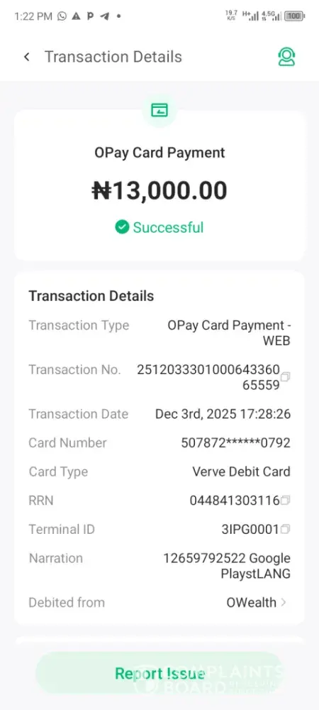 REFUND REQUEST COMPLAINT Dear Customer Support Team, I am writing to urgently request a refund for a subscription that was mistakenly activated on my account through the Google Play Store/Filmora application. The payment was deducted from my OPay account on 3/12/2025, and I immediately submitted a refund request. Unfortunately, the refund has not yet been...