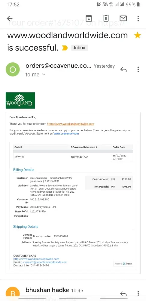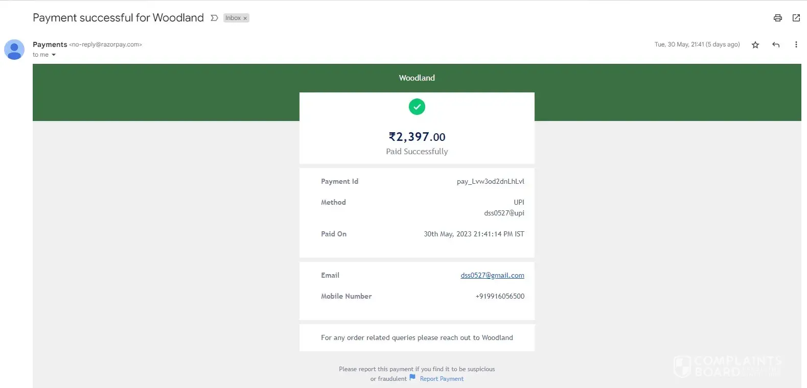 I have ordered shoes from woodland websites not showing any order details or shipping inform money got debited 2997 rs shoes not yet received, I paid through gpay I need my money refund back , woodland website also not loafing properly lot of bugs I couldn't get back when I paid order it loading continuesly and not any paid or order details I am need to get refund back