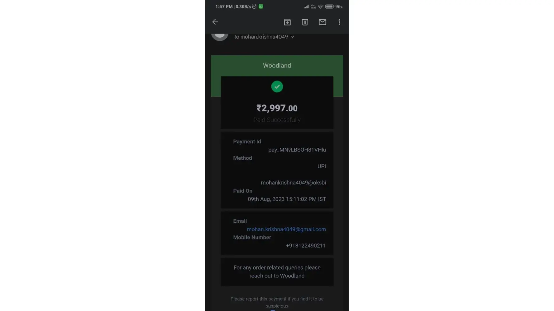 I have attached the transaction screenshot from my UPI app also the transaction confirmation from the Razorpay.