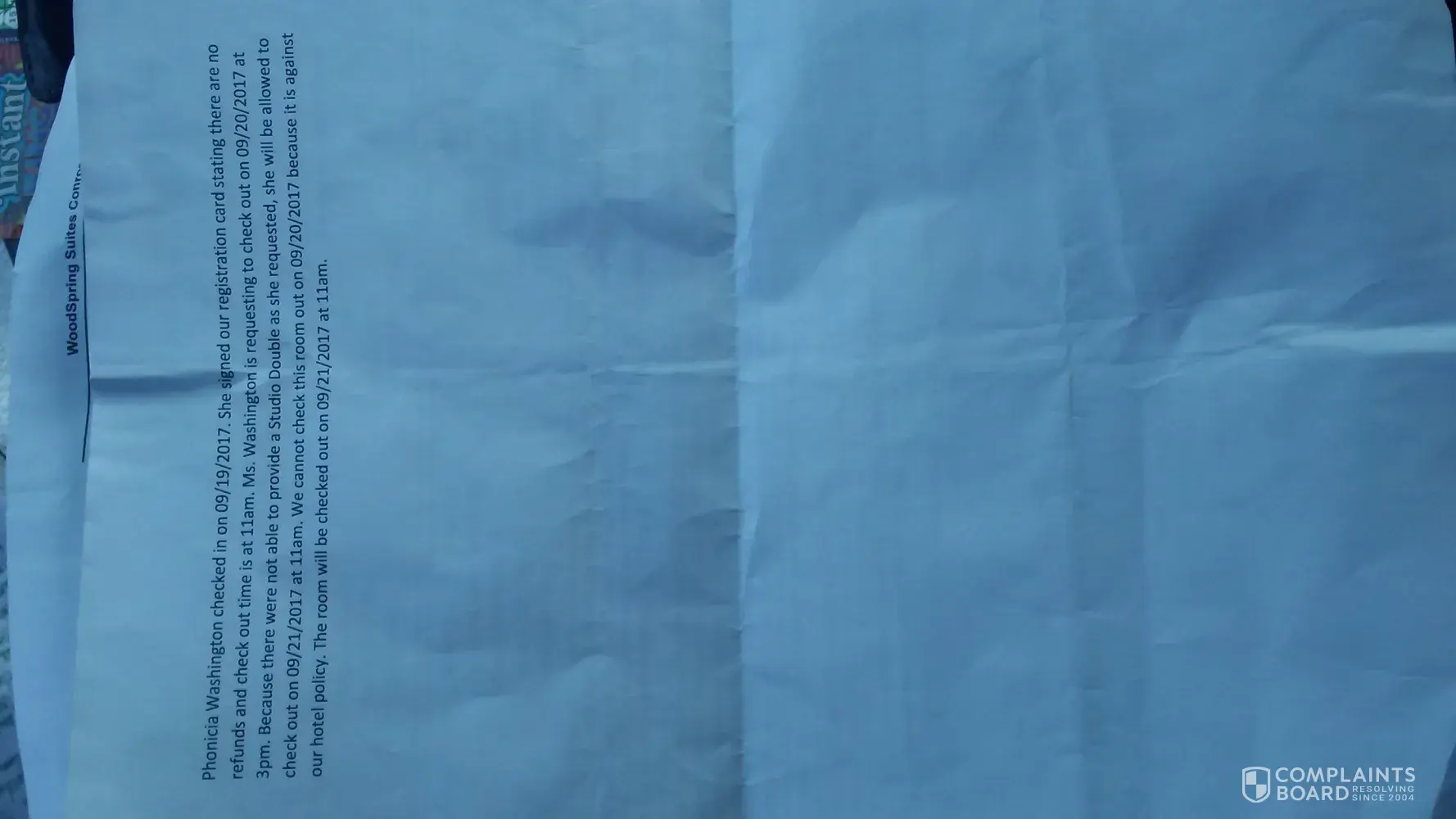 When I calculated what I paid each day and what the remaining balance of my 3 days was I was told that was not correct. I was only given $90.76. I went back today, October 31, 2017 to talk to a manager. She didn't even take the time to refigure my bill. She just printed me off the sheets and handed it to me and said it was all ok and to give that to my company. I wasted my time. I was even told on Saturday to come back the following week to talk to a manager. I have always paid cash and the full amount. I am totally disgusted with their lack of concern. Looked like they were too busy to bother with my issue. The manager kept saying she needed to get upstairs and check two rooms that were making too much noise. All I ask is that the $55.16 I was shorted be sent to me. It's not a lot to ask to keep a customer/company satisfied. Also, this will have us return and continue to use WoodSpring Suites in the future. Thank you.