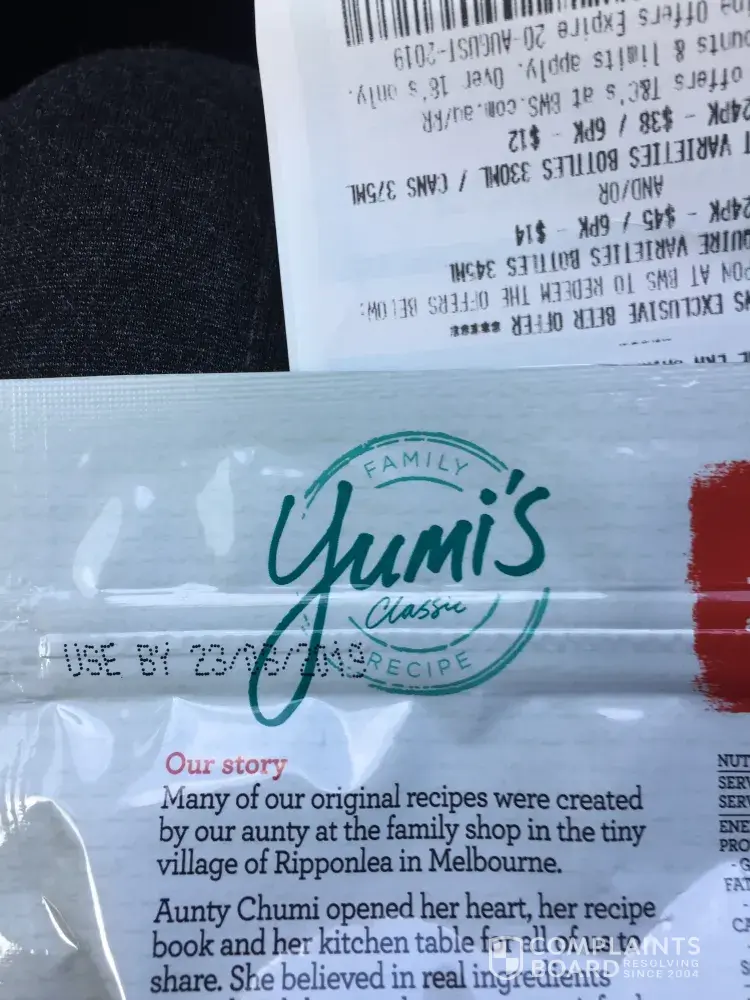 Expired Product - Yumis Falafel Balls - purchased 5/8/19 - expiry date on product 23/6/19