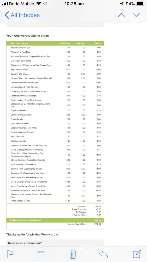 I usually shop with coles, but after seeing that Woolworths is supposed to be better value for money I placed my first order with Woolworths.
