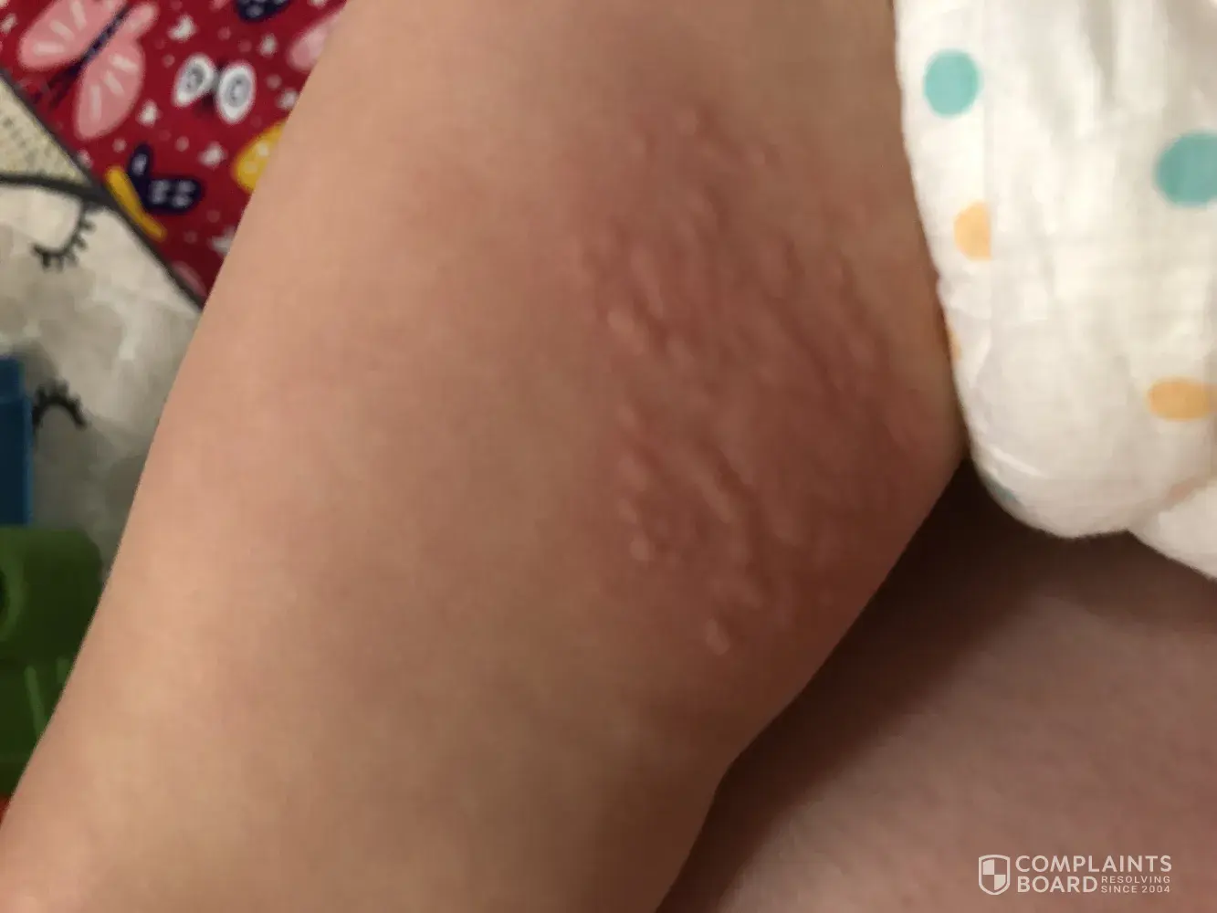 Yesterday the 09/08/2019 I had opened a new packet of the nappies and put one on my daughter within minutes she started scratching in her groin and on her belly where the nappy sits. I took her clothes off and she had broken out in complete hives (which a dr commented they're the worst his ever seen).