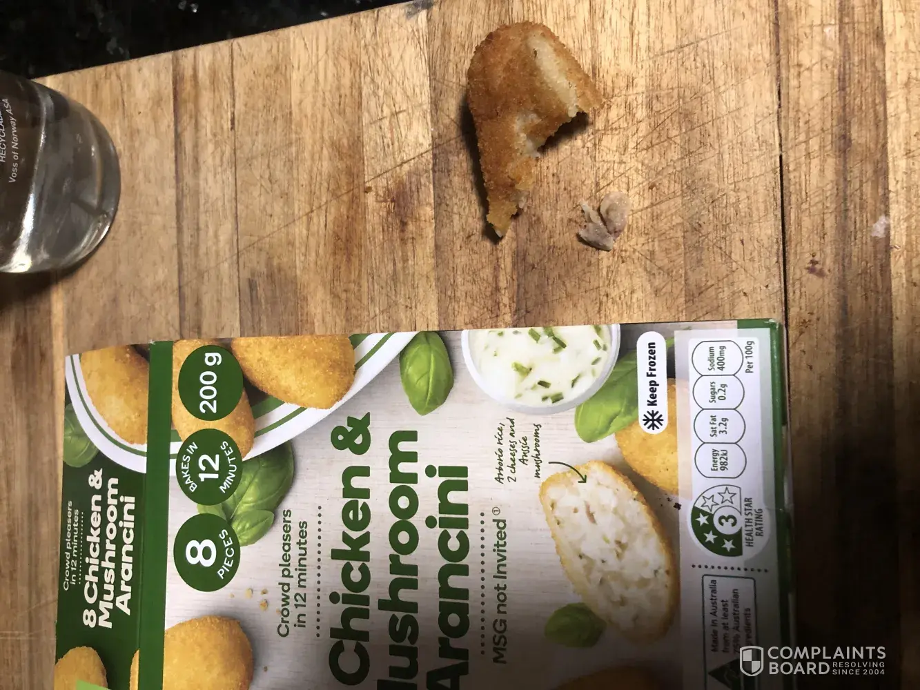 This evening I purchased a box of Woolworths Brand chicken and mushroom arancini ball from the woolworths store at Cooleman court Weston ACT. On biting into one of the balls, I bit into what appears to be chicken bone. This was in the first arancini ball and sadly put me off eating the other balls and have disposed of them. My concern is that it could be a choking hazard if given to young children or cut into someones gum as they would not be expecting it.