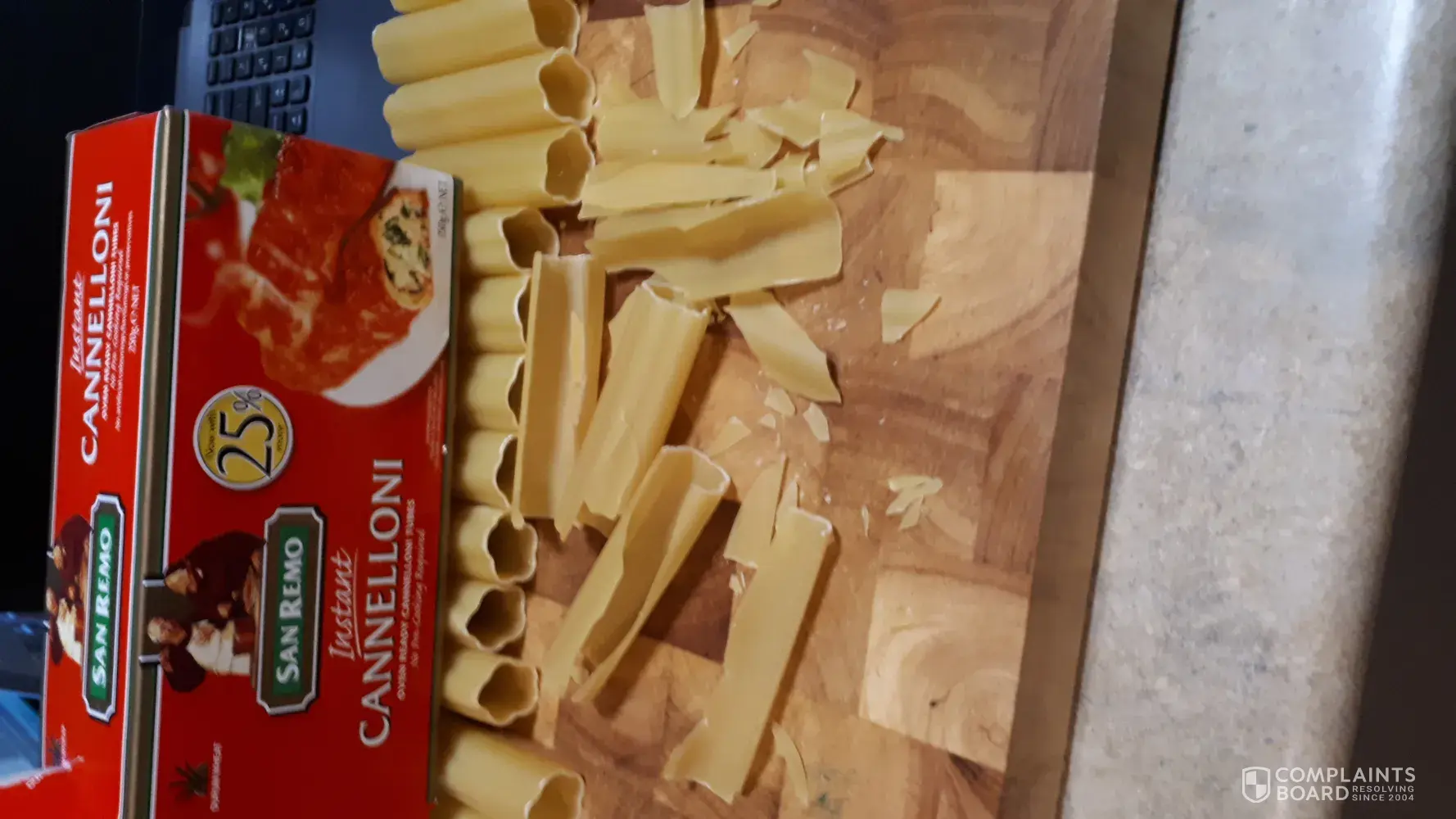 Hi. I have never complained before, but last night was a special occasion and went to a lot of trouble to make our meal nice, and I was very disappointed. I purchased a packet of San Remo cannelloni and when I went to fill them discovered that a lot of them were broken. I do realise that they are fragile, as a lot of other products are, but feel that more care should be taken when transporting and handling these sort of items. Just letting you know. Denise Shores. Carrum Downs