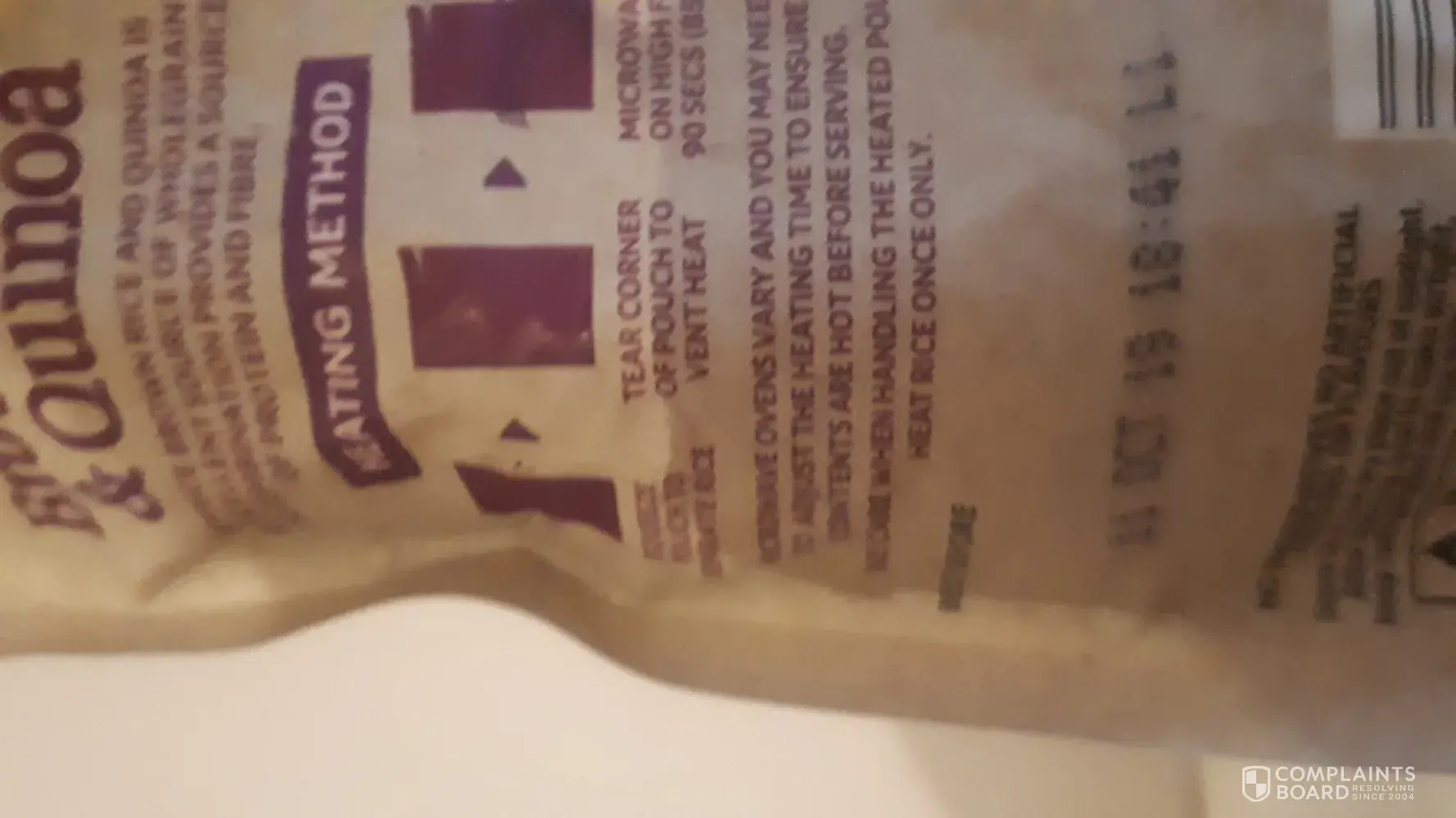 Hello. Today i bought 4 packages of this rice and quinoa ready in 90 min microwaves and once at home I opened one to warm it up and I founf a disgusting mix of crowning maggots.the other 3 packages looks the same.