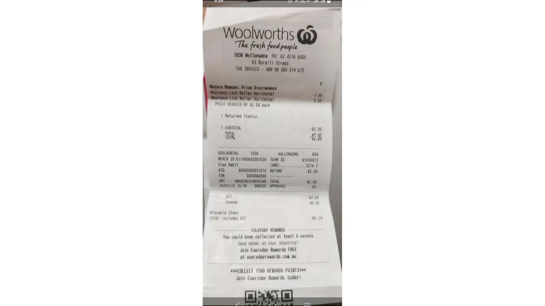 An item scaned at a higher price than label showed on the shelf. When I brought the item to the customer court. the staff refused to follow the scanning code of Practice. He insisted on returning the part of the difference between the price I paid and the price label. the shop was wollongong Woolworths. Time was morning 24th July 2023. please check the details on the photos below. Thank you