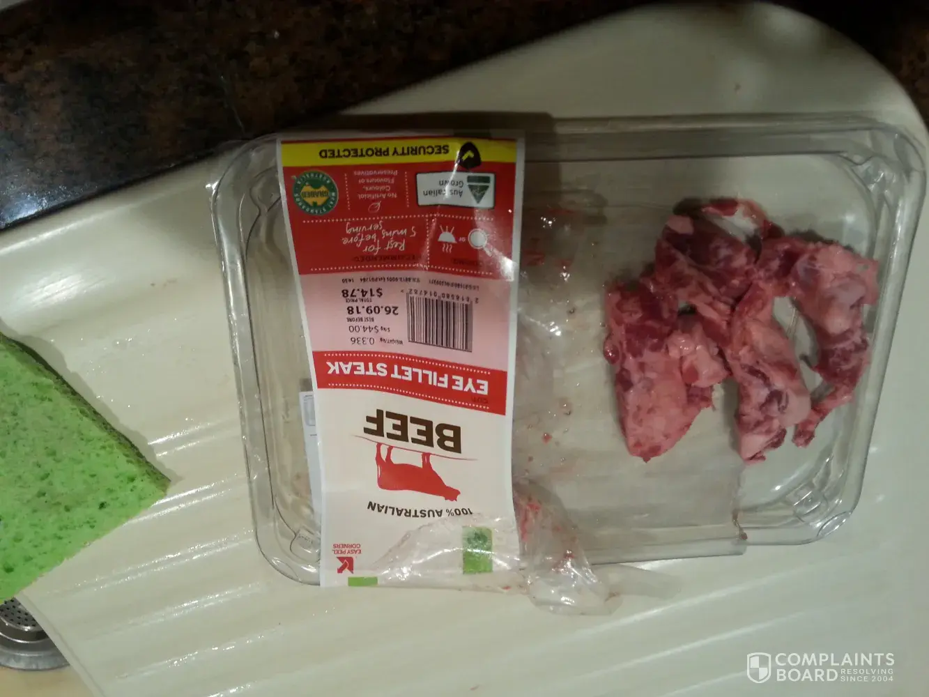 Purchased Woolworths Brand 100% eye fillet steak at Richmond NSW store on Monday 17th September 2018.