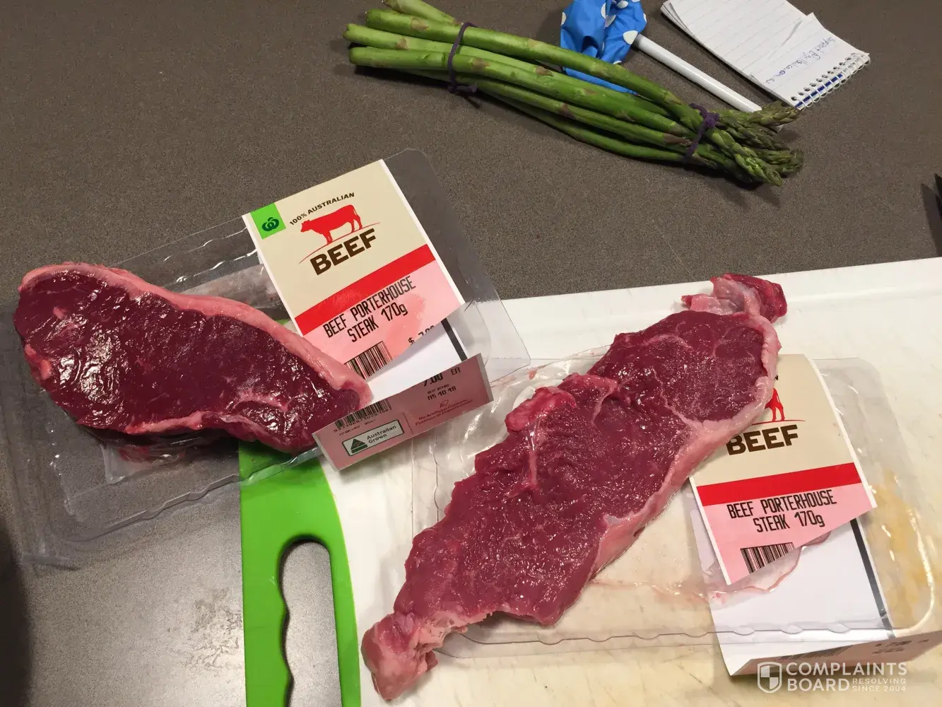 Not porterhouse! Tonight I bought two individually packaged porterhouse steaks from Woolworths supermarket in Hoppers Crossing, Victoria Australia . One had good thickness and texture, the other was a thin, stretched out and flaccid piece of meat resembling chuck steak. I suspect inferior steak was substituted for porterhouse. Poor form by the in-store butcher.