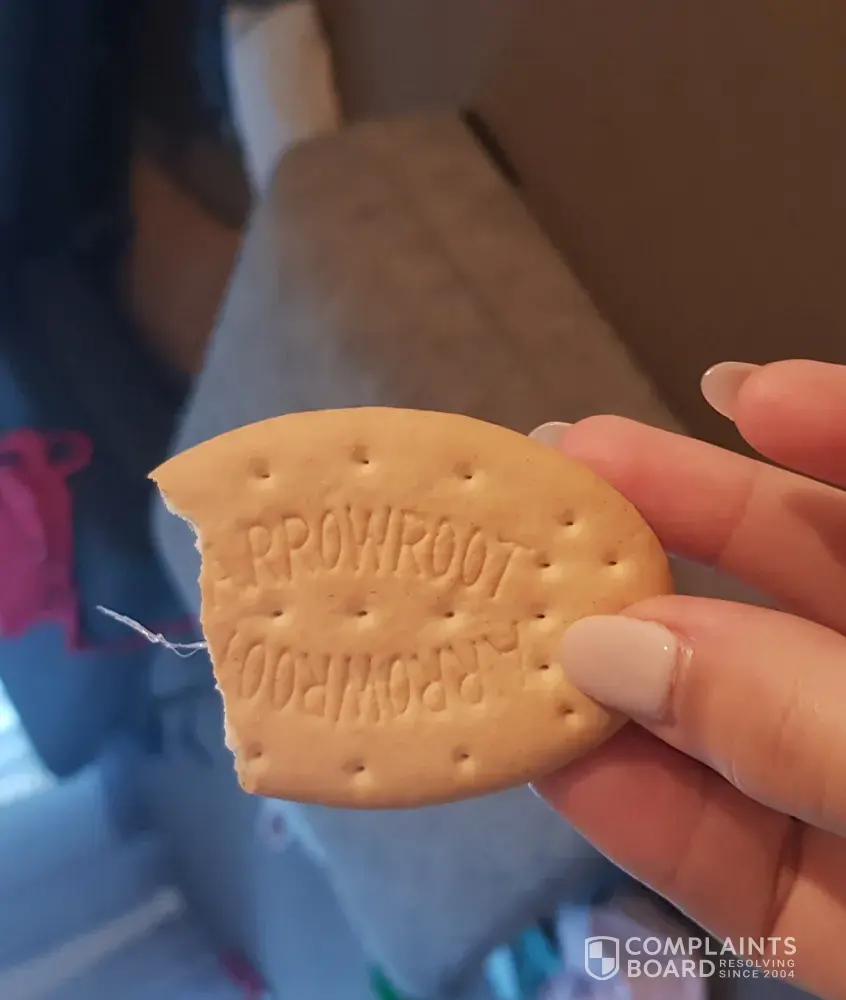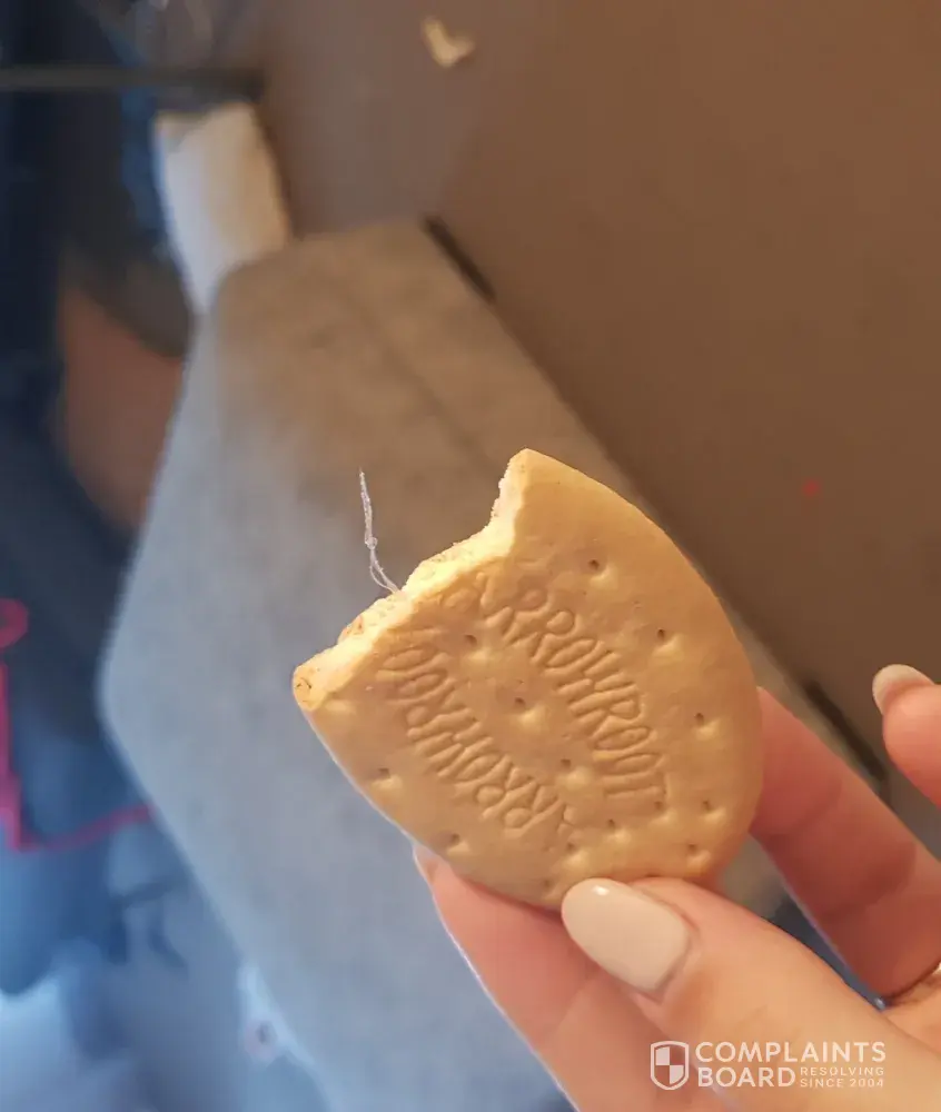 So we looked thru the whole packet and to our disgust we found another biscuit with the same thing.