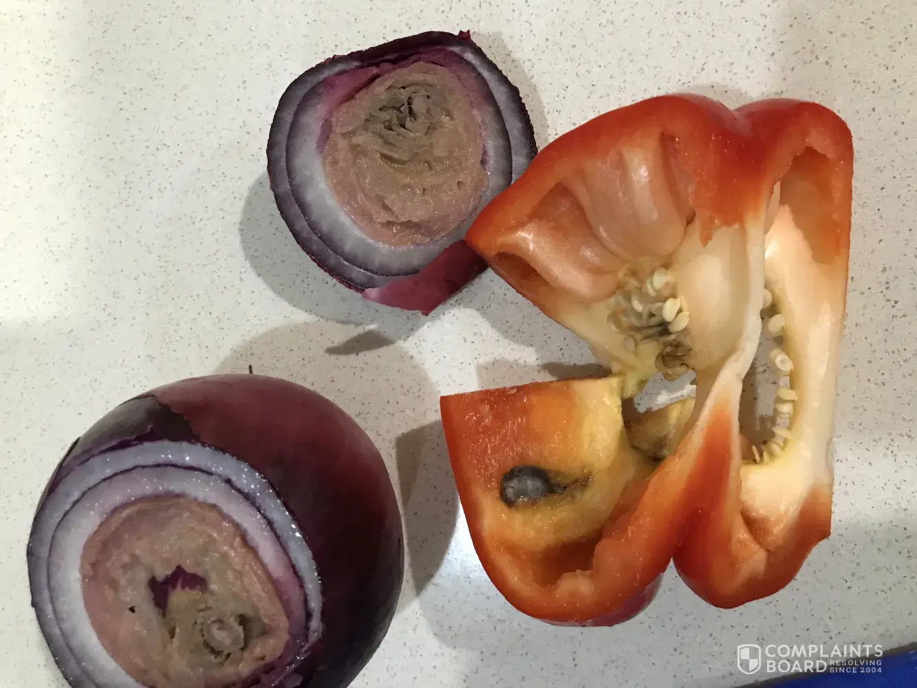 Today I went to my local Woollies to buy my salad ingredients. I purchased a trolley full off goods and the 4 things I wanted in my salad. When I got home and was ready to prepare my food I cut open my red capsicum to find it was mouldy! Then I sliced open my red onion to find it rotten as well! I'm furious not only is our Woollies filthy and run down, I mean it's f I'm the stone ages it's also selling rotten food when we live. In the food bowl off Australia. This is by far the first time this has happened! This time I'm going to make it known!