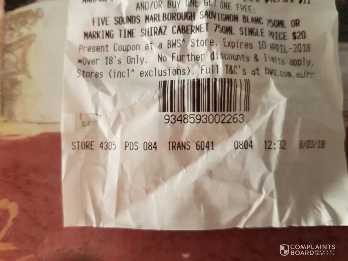 Woolworths buying a sprite bottle that was full of water instead of soft drink