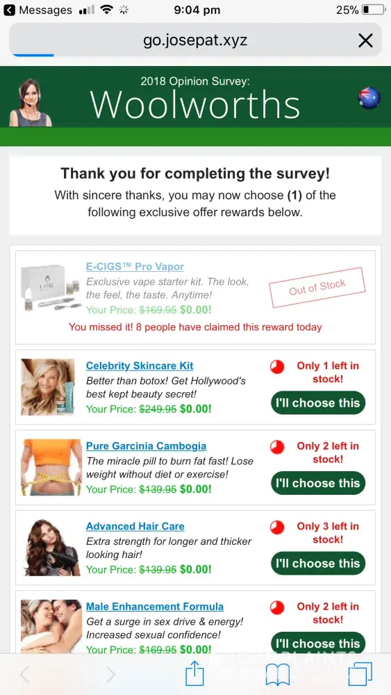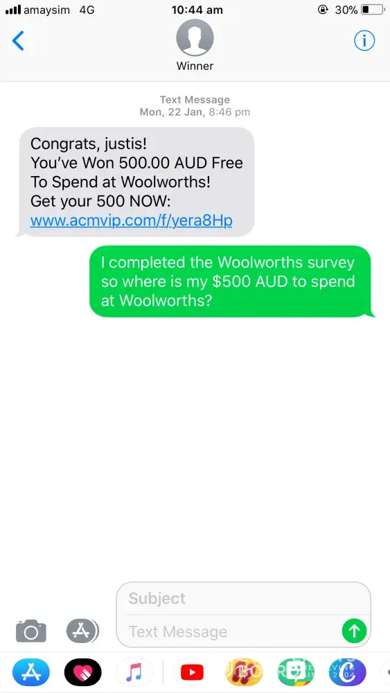 I clicked the link in the SMS and completed the Woolworths Survey and submitted this expecting to receive my $500AUD to spend at woolies and haven't received anything to date.