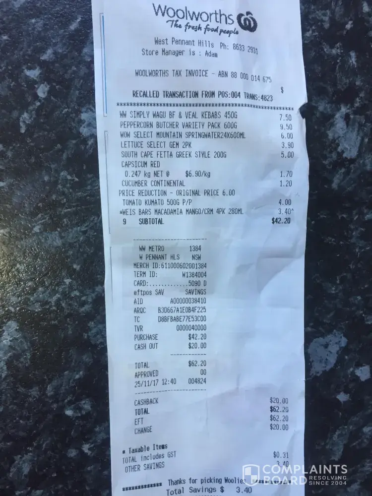 Gareth came out and told me a similar thing only just going on what he had been told. I was not happy with this answer as i never received $200 back in cash. I told him that I understand mistakes happen but it is how you rectify them that matters. I had intended to do my weekly shop there but would now be going to Coles. He said he would need 15 minutes to try to sort it out.