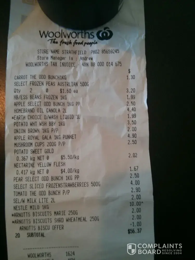 What bothers me is this; lets say every time i shop at woolworths I spend and extra $10 to $15 I didnt want to or plan on...I will spend an extra few hundred on groceries every year. Thats not fair. Advertising one price then charging another is against the Trade Practices Act. Like I said, it happens when i shop at your store far far far too often. I usually shop(fyi) at Safeway Watergardens (when i go to safeway).
