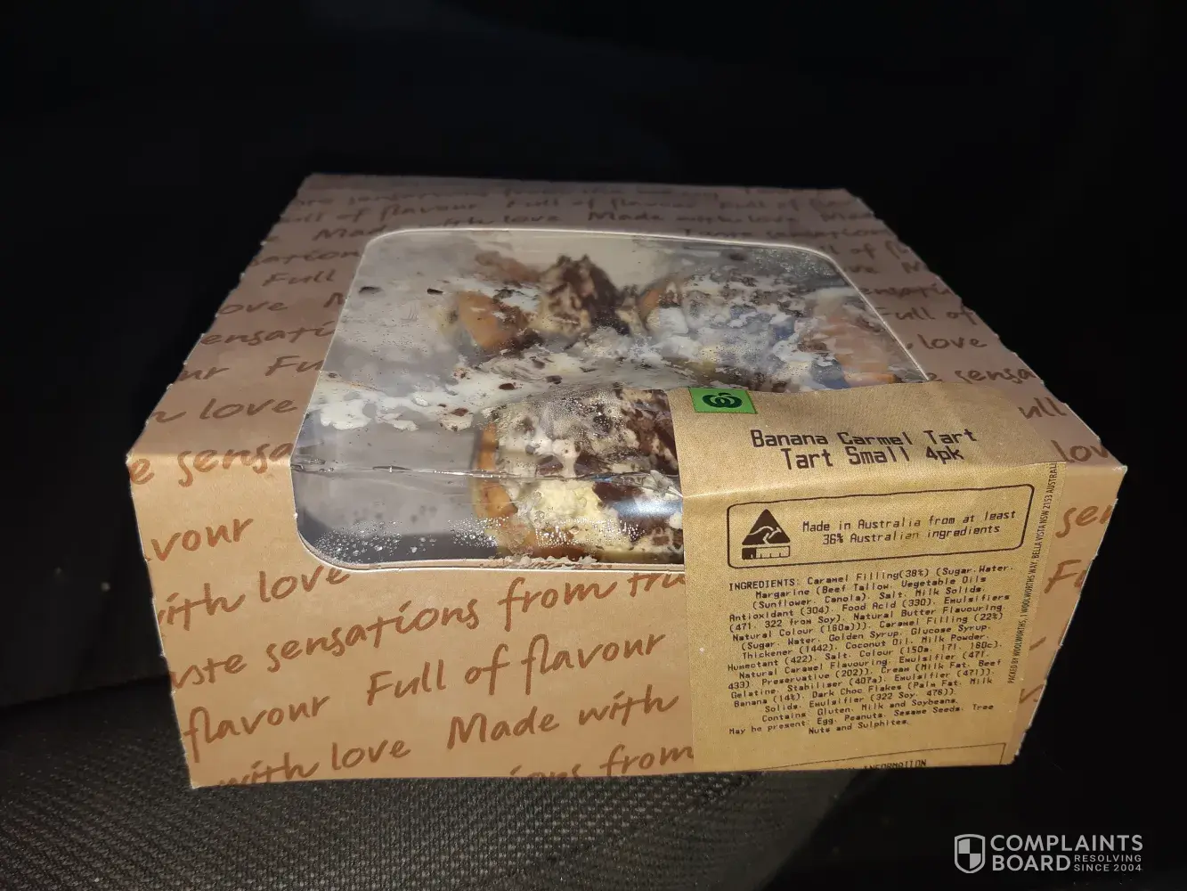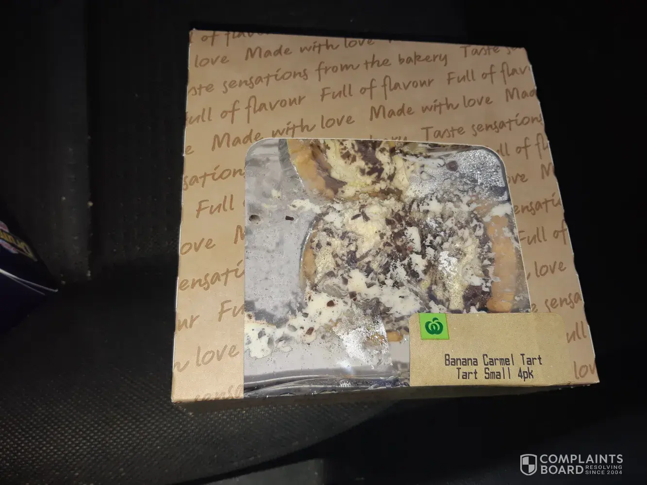 I don't usually complain but today I bought a custard tart from Woolworths because I really felt like one, I got home went to eat it and it was fully frozen and completely inedible, a product I once thought was baked fresh, I feel as though I have been lied to by Woolies and now I've lost my faith in them and won't be purchasing from there anymore