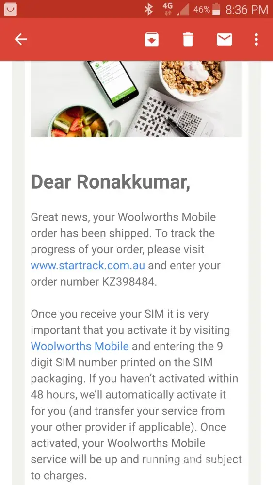 This is a complaint regards to Mobile order that I have placed on 20/11/2016. I have given a confirmation email that my oreder has been shipped and I have given with delivery tracking number. I tried to track number from last 5 days and the delivery status will be the same every time. After all I spoke with Woolworth customwr care and they find out my phone is already in the store. When I came to store to pick up a phone the Woolworth representative(Nancy) was haldling the discharge of phone order. She told me without any email confirmation code I can't handout the order. She called in customer service again and she passed phone to me I gave all the details about my order nuber and all. He asked me to send an email with screen shot attached. I did it all the procedure and formalities. I got reference nubdr by email that I have sent. The Woolworth representative told me she is in somoke break and I can't help. At the end I waste my hour to speak with f... ridiculous customer care representative.