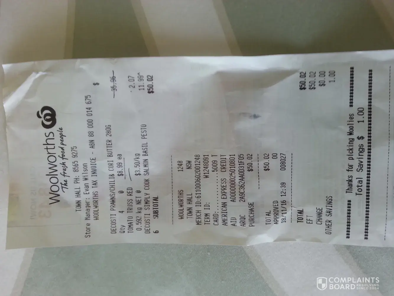 1) I was shopping at leeton Woolworths, NSW
