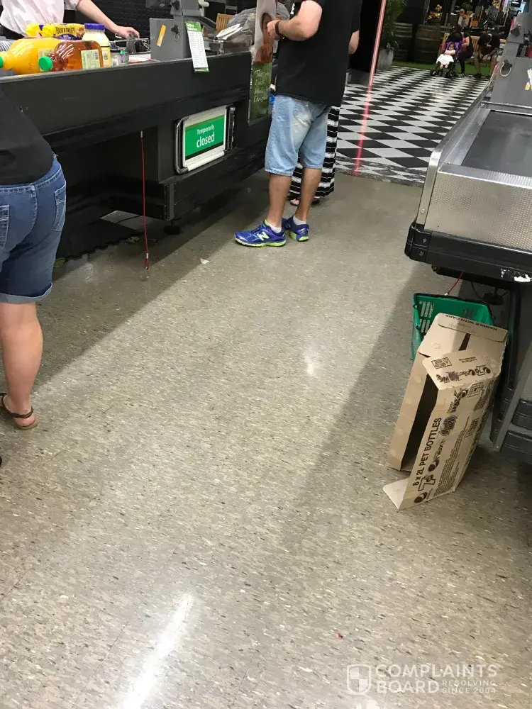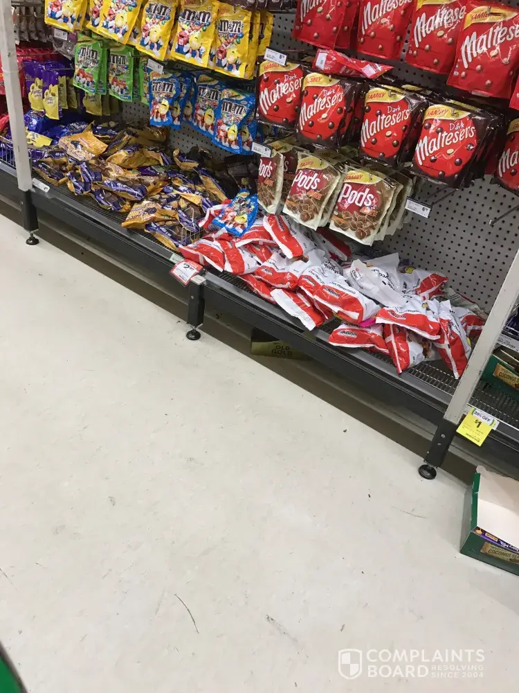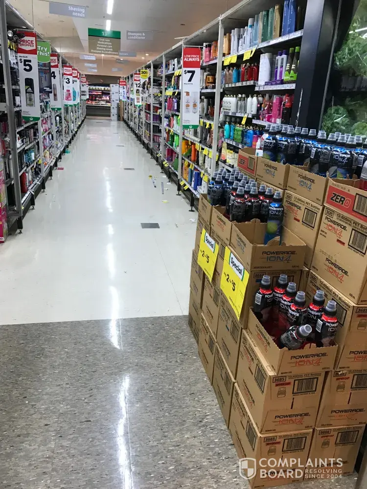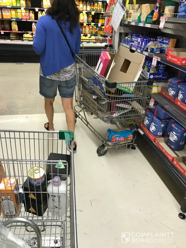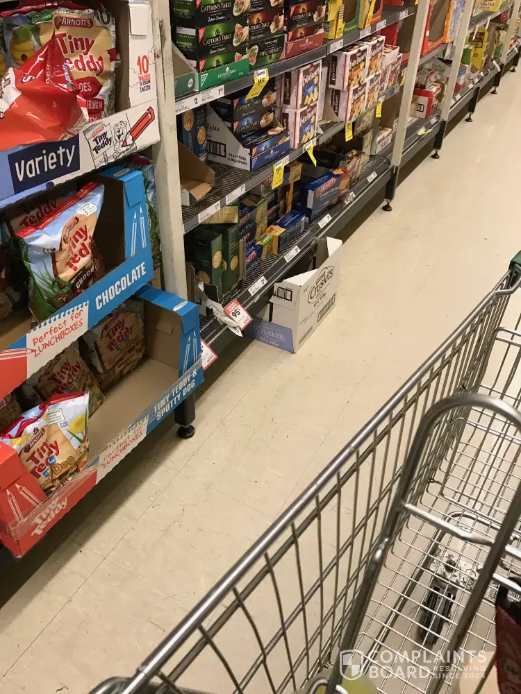On top of this... hardly any trolleys available, products not on the shelf, empty boxes everywhere, products on floors and just a mess everywhere.