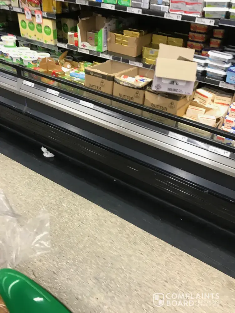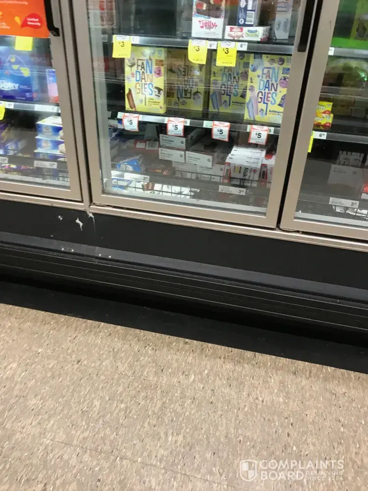 How can a store still operate under such poor conditions. Food all over the floor, filth underneath the frozen food sections, food spoils on doors... the list goes on.