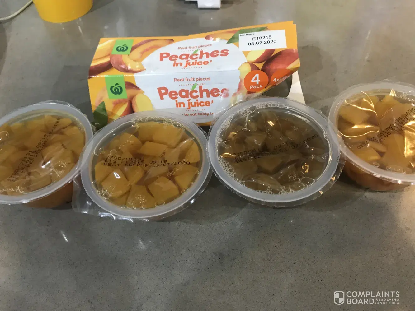 This afternoon I purchased a Woolworths brand - peaches in juice. I normally never have a problem with this product. However, this time I couldn't help noticing the colour difference and something I could not find any child or any pet of that matter.