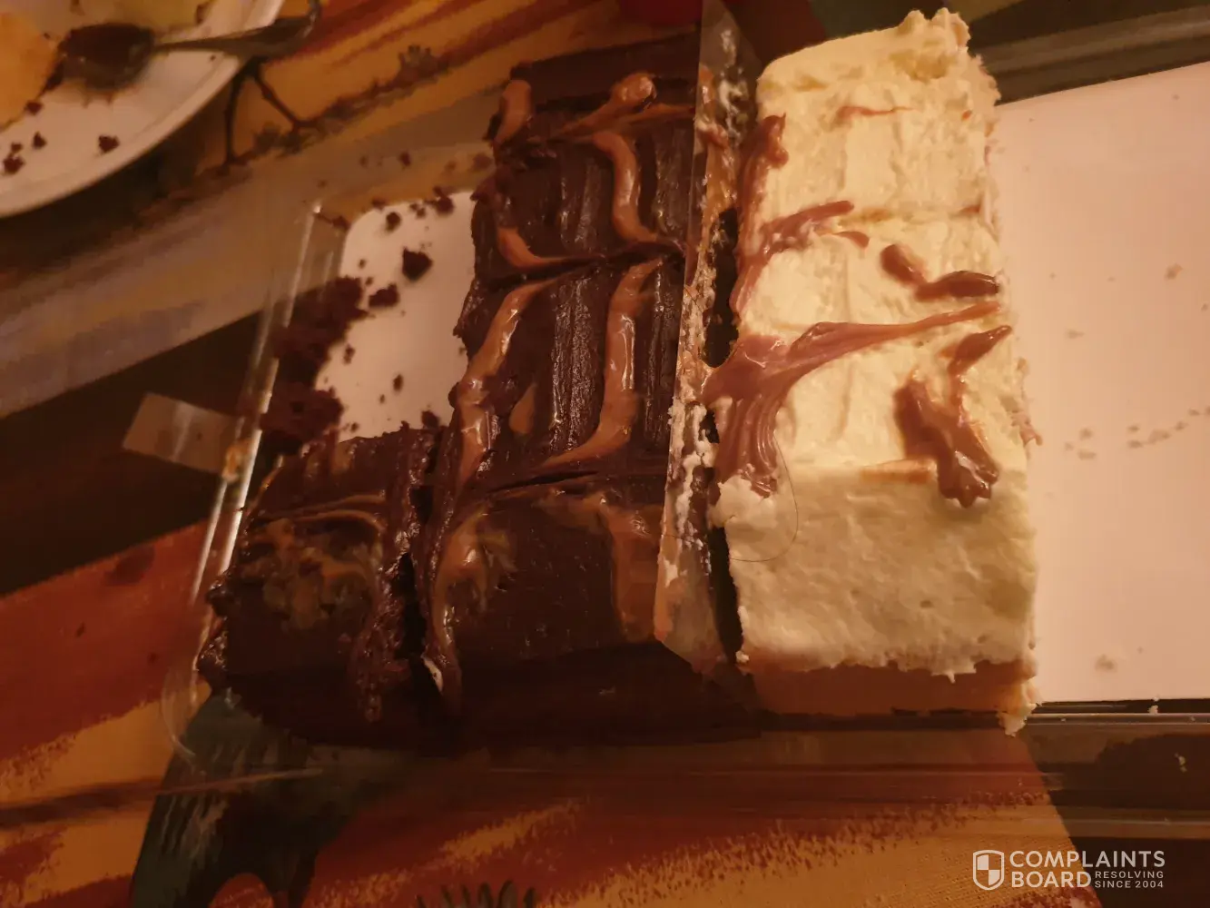 On Thursday 9th January 2020, I purchased a chocolate & vanilla caramel tray bake cake at Woolworths Canterbury store cnr Bram Fisher and Hunter Road. We were horrified when we ate a few pieces of cake and noticed human hair inside the cake. First my wife took a bite and pulled out a long strand of hair from her mouth while eating the piece of cake.