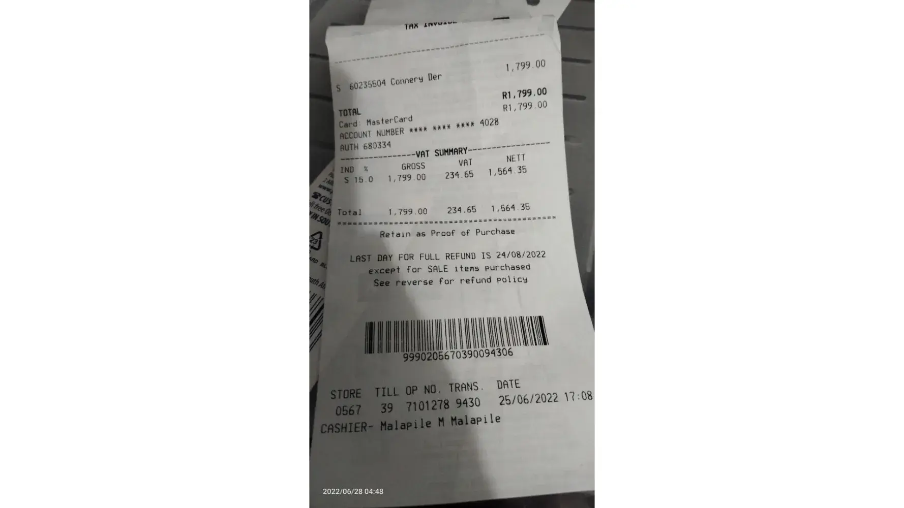 I am rather disappointed at the service we received at The Liberty Midlands Mall Woolies,Country Road Department,Sunday 22/05/22.My children went in there to exchange my hubby's shirts which he received as a gift as the size was incorrect.Firstly the salesman said that the clothing was smelling of detergent. Secondly he said that we skilfully pulled out the tags,wore the garment and put the tags back.He called the supervisor who refused to exchange it as well as it had a smell of detergent. I then asked to speak to the manager