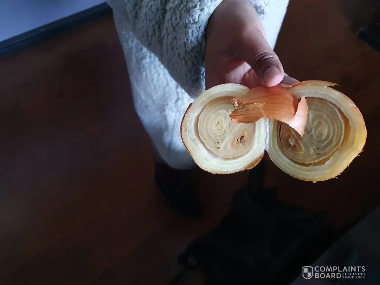 Desired outcome: I would like an apology and a compensation for the onion I had to throw out