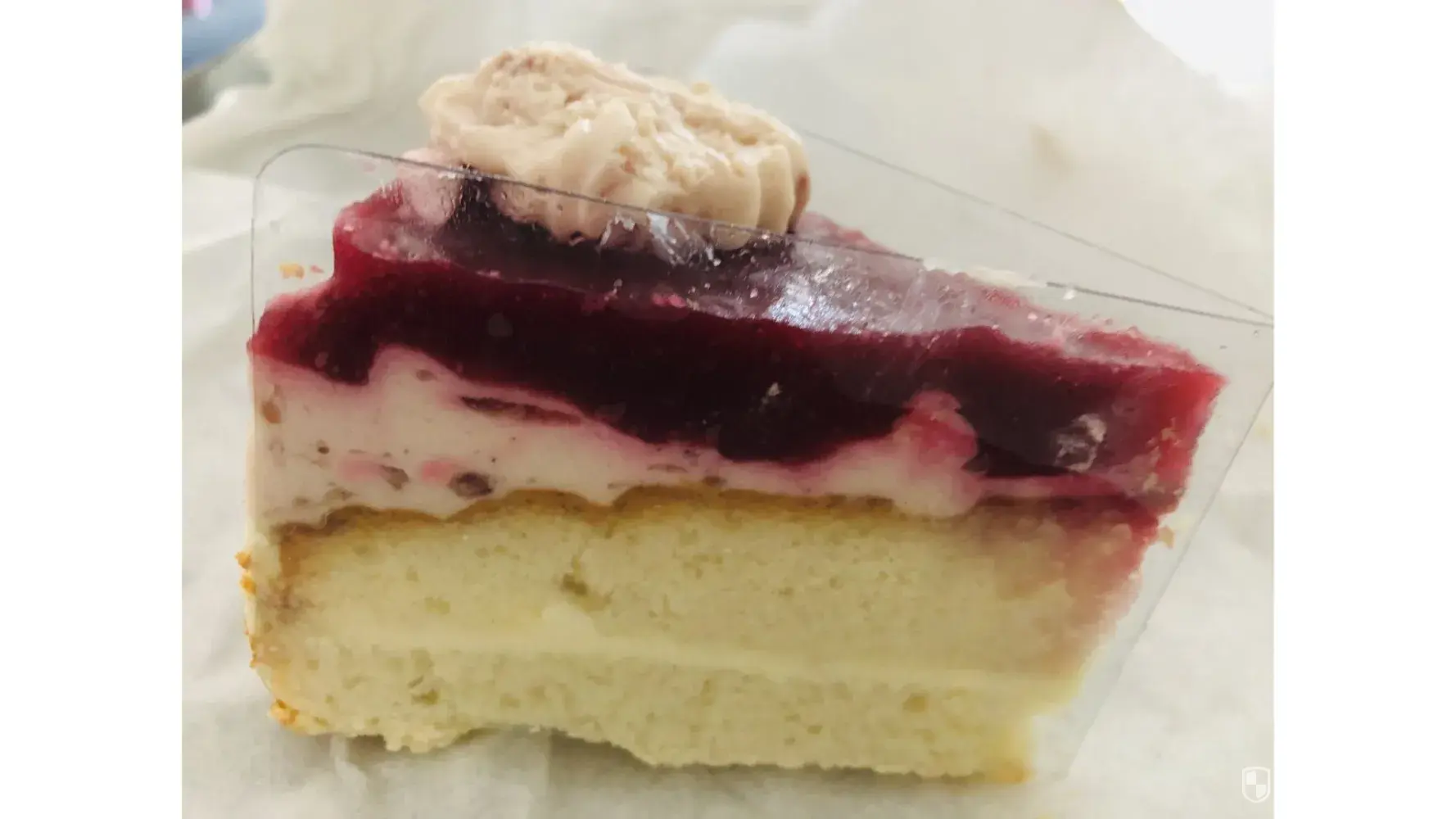 Attached are two photographs: One of the box lid and the other of the actual slice that was inside the box.